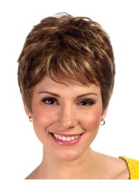 | This wig is a chic short pixie style with a tapered nape and face framing bangs. The wig feature a 100% hand tied wig cap with all hair strands individually providing the most natural look. It weighs 51 grams. Bang: | 1.5", Side |