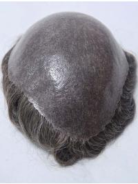 100% Human Hair With Gray Hair Full Poly Man Toupees