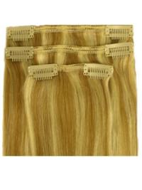 The half head clipins come in three sections, 1x10cm width and 2x14cm width, every piece is double wefted for extra thickness and has an extension clip at each end, so six clips in total. Scroll down to see our colour chart below, and to try and find the best match for you. One of the advantages to the clipins is that they can be clipped in and out without any damage to your own hair. The 22 inch clipins are ideal for a long length style, although we do recommend the full pack of six pieces is better for a full head. The 100% Human Hair clipins can be styled using heated tools such as straighteners and curling tongs.