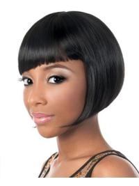 The wig is a modern and stylish bob with slant sang cut, creating a stunning silhouette. A light and pretty bob, with lots of natural swing. The light but full side swept fringe will accentuate eyes and cheekbones.
