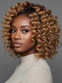 This curly blonde bob is full of bounce and personality! The curls are defined and lively, adding tons of volume and texture that really make a statement.