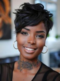 Incorporating a side part into a short cut can dramatically change the overall impact of the hairstyle, adding an element of depth and sophistication.
