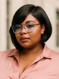 A side part always creates visual movement, and when paired with feathered bangs that softly angle down the cheeks, the face instantly feels longer and more sculpted. This cut adds softness around the edges without losing shape.