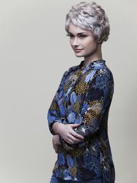 It is a fun short style with curls on the crown and back.
