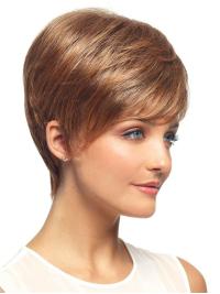 The wig will effortlessly transform your look into a chic, classically beautiful and sophisticated style in a minimum, no fuss instant! A gentle fringe which can be styled softy to the side, measures 5.7cm. Enough length to frame your features, but not too much to overwhelm your eyes. Short styles are always popular as they are easy to maintain and comfortably light. This particular ladies wig has a combination of slighty longer layers which add a feminine touch, coupled with a snug fitting neckline.
