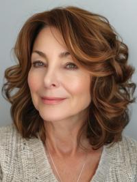 This layered bob is all about volume and bounce! The layers give the curls dimension and movement, creating a style that’s both full and light. The warm auburn color adds richness and depth, making this a perfect choice for bringing out a youthful glow.