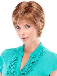 This woman wig is a collar length shag style with long layers to create more natural movement. Bangs can be styled straight along the eyebrow or swept off to the side. A tapered, wispy nape finishes this trendy look. Now you can have a short style, but feel the comfort of neck hugging layers. The ultimate in realism and comfort. Its monofilament' top is soft, comfortable, creates a natural looking crown and offers beautiful movement.