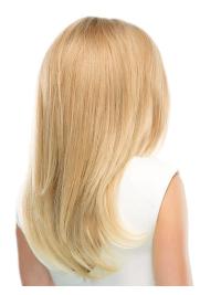 This wig is a romantic long layered style the softly flows below the shoulders. The wig can be styled with heat to crimp, curl, or keep straightened. It weighs 170 grams. Bangs 16.0", Crown 17.0", Sides 16.0"-17.0", Nape 16.0"