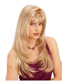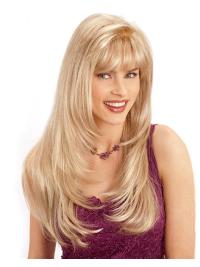 | This wig has gorgeous, long layers flowing below the shoulders in soft waves with a face framing layer of bangs. For those who love long hair this is a glamorous style. The wig features a unique 100% hand tied top with a newly developed Illusion front hairline offering you extra styling versatility and a more natural appearance. Bangs 4.5", Crown 16.0", Nape 18.0" Overall length 30". Face Shape: | Diamond, Heart, Oblong, Oval, Round. |