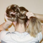 Scoop the bottom clip into your bun securing the updo to your own hair.Step 5: