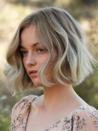This wavy bob haircut that perfectly blends chic elegance with a romantic flair. The soft, loose waves frame your face beautifully, creating a gentle and approachable appearance that is ideal for both casual outings and more formal events.