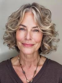 The feathered bob with soft curls is a romantic and feminine hairstyle for women over 50 with fine hair. This cut features a chin-length bob with feathered layers and soft curls that add volume and texture to the hair.