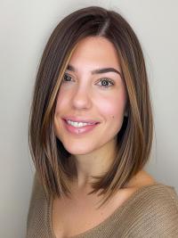This straight bob style emphasizes the even cut of the lob, showcasing its blunt lines and clean angles.
