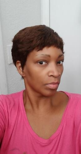 This wig has a short layered bangs with a tapered nape. It is a beautifully, cropped wig that has a soft, pixie shape. The wig is available in lots of lovely colours.