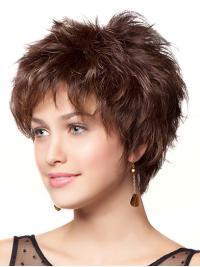 This wig has short razored layers for a spiky chic style. It features a standard weft cap construction for all day wearing comfort. It may be worn as is or with synthetic hair care products to create a more personalized look and it weighs 70 grams.