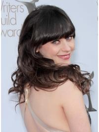 This wig's long, curly, tousled, black hairstyle with bangs is a flirty way to style long hair. It is an elegant wig that is a classic and unique style. Popular with our regular clients.