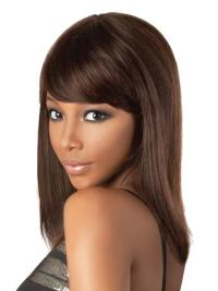 Auburn With Bangs Shoulder Wigs Human Hair African American