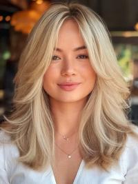 Long Wavy Blonde Without Bangs African American Wigs