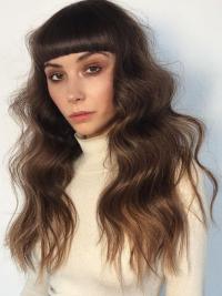 Brown Wavy 24" Beyonce Brazilian Wigs Human Hair With Bangs
