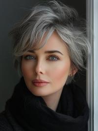 Monofilament Grey Short Straight 6" Without Bangs Synthetic Wigs
