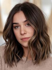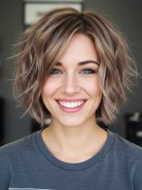 Women'S Wig Wavy Boycuts Brown Monofilament Wigs