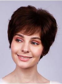 This is Rihanna's natural black cropped wig with long fringe can well show your personality, it also features stacked layers in the back that taper towards the ends. Along with a pure stretch lightweight, breathable capless wig construction with thin resilient dual elastic sides providing comfort and a precise all day fit.