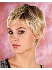 | This wig is a short style with smooth layers, tapering at the nape and sides. The wig features a monofilament crown for a natural appearance at the scalp. A 100% capless construction with ultra thin weftings provides breathable and comfortable all day wear. The wig has exclusive highlighted colorations to add a touch of realism by using the most current coloring techniques to create an amazingly natural appearance. It weighs: | 46.7 grams. Bangs |
