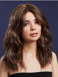 A classic wig with long wavy layers and separated center, which looks very comfortable.