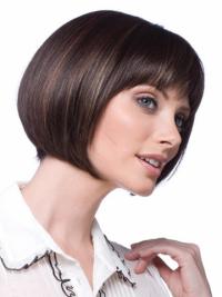 The Wig is a sleek smooth bob cut. This trendy style is achieved using razor cuts for a sharper, more distinctive edge. With beveled fullness around the sides and nape, this style creates the perfect face framing hairstyle.