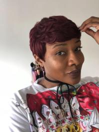 3) Grasp the wig at the top and slip it over your head from your natural hairline to the natural hairline in the back.