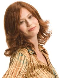 This is a nicely layered mid-length wig. The human hair allows you to style the wig with heat tools, just like your own hair. It feature a lightweight open cap design with a velvet front. It is a natural-looking and sophisticated style.