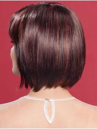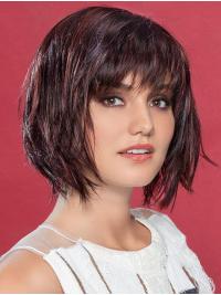 This is a short, trendy, and softly angled cut wig. The hair and bangs are cut to create the classic bob hairstyle. The layers extend below the chin and have fullness at the root to add volume with movement. If needed, the wispy bang can be trimmed to fit your face shape.