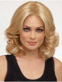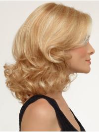 | Curly wigs can be a quandry for wigmakers as they can be difficult to create a completely, natural looking style. The soft curls appear towards the tips of this pretty wig. The cap will give the impression that the hair is coming from your own scalp. It is the ultimate in comfort and realistic appearance. Measurements are as follows. Grab a tape measure and then you can judge where the wig will fall against your own features: | Open Fringe 18cm. Overall Length from Crown to back tips is 36cm. The wig is a pretty, natural look which is comfortable and airy to wear. A truly, lovely style that we have all fallen in love with. |
