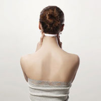 3) Grasp the wig at the top and slip it over your head from your natural hairline to the natural hairline in the back.