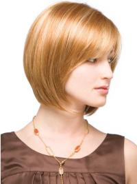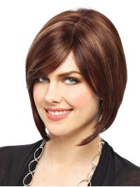 The wig is a shapely bob, with lots of sleek and straight swing! The cap will give the impression that the hair is coming from your own scalp. It is the ultimate in comfort and realistic appearance. The fringe on the wig is 5", so it is worn slightly swept to the side. The fringe then prefectly blends into the side layers. This wig has a striking silhouette as just at the ears, the layers get gradually longer. The longer layers then fall softly in a gentle point, just below chin level. The slight graduation of the wig adds to the beautiful and natural swing of this piece.