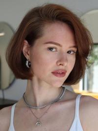 This look is beautifully balanced between vintage elegance and modern softness — such a timeless style! Rich auburn tones and a swooping side part give this bob a romantic and timeless feel.
