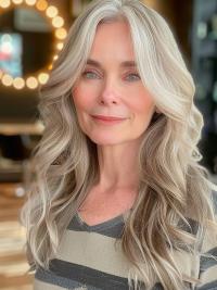 The soft, voluminous waves give fullness, while the layers add just the right amount of texture. Great for embracing natural grey or silver hair, this cut adds movement and youthfulness without requiring too much styling.