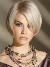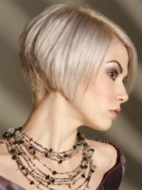 Sophistication comes in many colors and muted platinum beige turns heads when the hairstyle is short and exceptional like the one we see in the photo. Beginning with a smooth side part and skirting around the nape area, we discover it is clipped up close and evolves into an inverted bob and begins to slant down the side outlining the jawline. The perfect haircut to expose a beautiful long neck! Straightening gel will assist with this look.