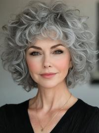Gray curls look amazing with the classic bob because gray hair’s texture changes and becomes more manageable with shorter lengths. This timeless cut improves the natural shimmer of gray hair, making it look healthier and more vibrant.