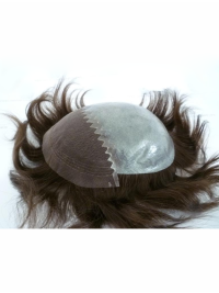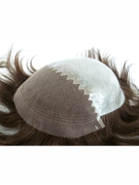 This system is make by half lace and half pu meterial. its has get the best advantage for the piece! for front lace, it will makes the piece looks more nature and the back pu can put teh right hair to cover everthing! they get together Which have a more natural look and the least durability. The front hairline has a scalloped edge to soften face. This is the most natural looking.