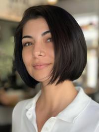 This bob is cut to chin-length with a curvature that gently caresses the contours of an oval face, ideal for adding subtle softness to your features.