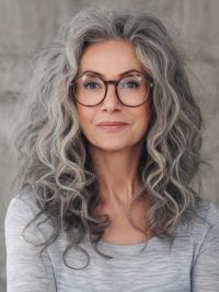 Embracing your natural texture has never looked so chic. This is a daring and gorgeous instance of women that embraces originality. The silver is mixed with some darker strands at the roots, which gives it dimension and depth, which makes the curls interesting and full of character.