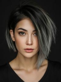 With silvery gray balayage lifted over jet black, this bob creates a mystery and a striking style.