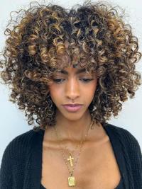 Soft curls with golden highlights give this bob a sun kissed, radiant feel that brightens your whole look. The honey and caramel tones pop against deeper roots, creating a natural depth that flatters warm skin tones beautifully.