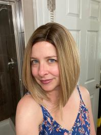 This straight, layered bob is a sophisticated way to style a longer bob. There is lots of coverage over the nape area if you are wearing this piece over your own hair.