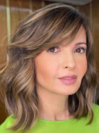 Flipped layered bangs bring movement to medium-length haircuts leaving your hair easy to manage. Brown caramel balayage is a great way to emphasize the shape of textured haircuts.