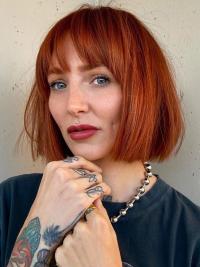 One of the secrets to Parisian bob haircuts with bangs is the effortless feel they deliver, and this blunt crop gets the right vibes with the tousled styling and haphazard fringe separation.