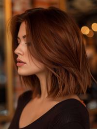 Chestnut brown is a classic, warm shade that brings richness and depth to shoulder-length bobs. Great for all hair types and face shapes, this versatile color shines in sleek styles or with loose waves. It’s a timeless hue perfect for any season.