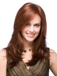 The wig is a long, feminine and a beautiful cut. The cap will give the impression that the hair is coming from your own scalp. It is the ultimate in comfort and realistic appearance. The fringe is very long at 9.25", so it is swept to the side. The finishing at the forehead has been delicately constructed, so that the 'open' fringe appearance is incredibly realistic. The long fringe then perfectly integrates with the longer layers throughout this wig.