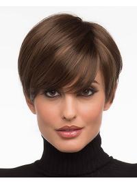 | This wig is designed to offer a chic pixie styling with long bangs that are swept to the side offering a flirty retro feel while remaining manageable and looking sophisticated. The basic cap with open wefting is breathable, lightweight and provides built-in volume on top. The wig weighs 67 grams. Front: | 4.0", Crown |
